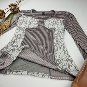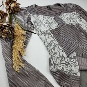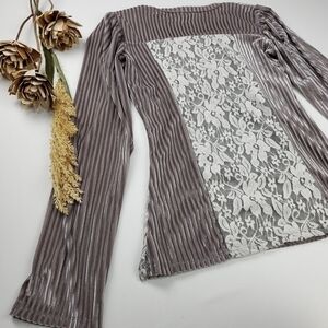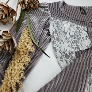 Andrade Lavender Lace Silver Stripe Shimmer Top S
