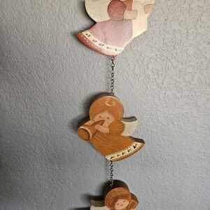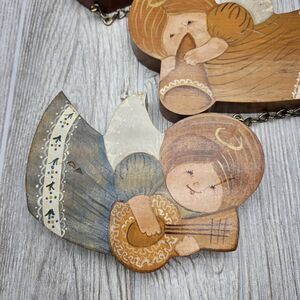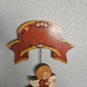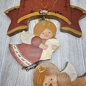 Angel Wood Wall Hanging Hand Painted Tole Vtg Christmas JOY Angels Handmade