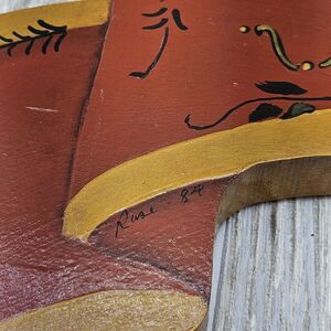 Crafted with care in the 1980s, this antique piece is a great addition to your collection. The JOY Angels design is perfect for anyone who loves unique and handmade collectibles. Add a personal touch to your Christmas decor with this one-of-a-kind wall hanging piece.