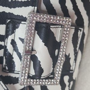 Exterior Details: Zebra All-Over, Rhinestone Belt Buckle, Silver Hardware