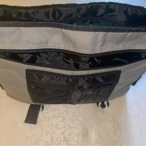 Anime Bleach shoulder bag, messenger bag, computer bag, tote.  I believe the character is Hitsugaya Toshiro.  Large exterior and interior zippered pockets.  Gray cotton canvas exterior, black fabric lining - very clean.  Adjustable shoulder strap.  See video for signs of wear on front.  Approximate measurements: 15” wide x 14” tall x 5” deep.  Good condition.
