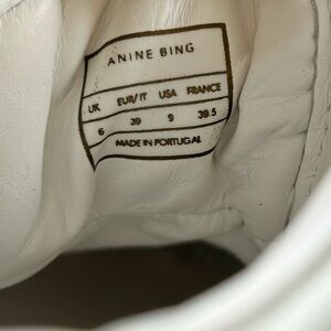 features: high-top sneaker made from 100% cow leather in white, this off-duty pair features an ANINE BING monogram embossed at both the inner and outer portions, rounding out its athletic, ‘90s-inspired look, take your true size, if you are between sizes, its recommended taking the next size up, made in portugal
