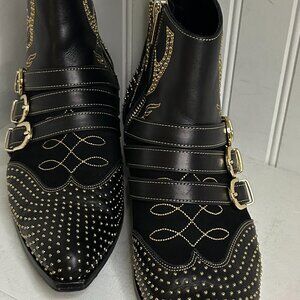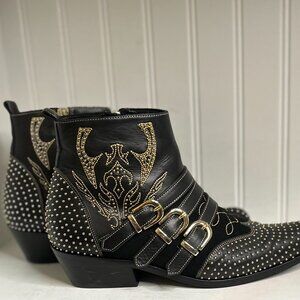 Anine Bing Leather Studded Accents Moto Boots Size 8
