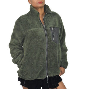 Anine Bing Ryder Faux Fur Jacket Green Olive Sherpa Teddy Plush Zip Front Small