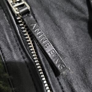 Anine Bling Ryder jacket FEATURES a soft sherpa outer fabric with imitation leather chest zipper pocket and trim. High collar. Zipper front closure. Side seam pockets. Branded zipper pulls. Oversized fit. Lined.