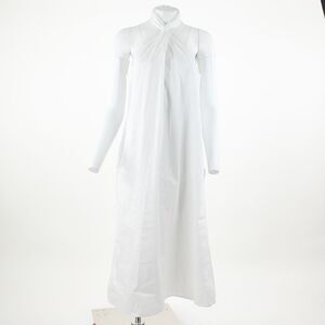The Cosette Dress is a twist-front, MIDI dress made from crisp 100% cotton. Its elevated A-line silhouette features an invisible zipper at the back of its high neckline and hidden side pockets for increased functionality.