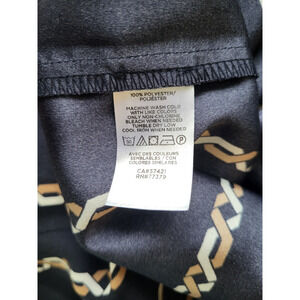 Sophisticated and versatile Ann Taylor chain link print blouse in classic navy. Features a V-neckline, button-up front, and elegant equestrian-inspired design — perfect for office, business casual, or polished everyday looks.