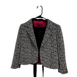 Ann Taylor Jacket Blazer Sz 4 Black Bow Closure Marled Short Office Careerwear