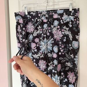 Ann Taylor LOFT Floral Lightweight Wide Leg Drawstring Pull On Multi Color Pants