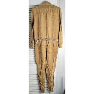 Ann Taylor Loft Womens Sz M Khaki Long Sleeve Linen Blend Utility Cargo Jumpsuit