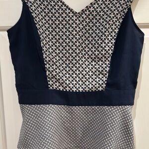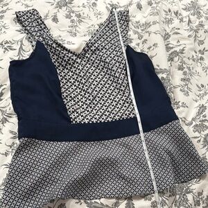This stylish women's top features a chic navy and white design, perfect for any occasion. The elegant pattern adds a touch of sophistication to your wardrobe. Ann Taylor. Size 6. Measurements as shown in photos.
