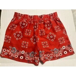Comfortable lyocell pull on shorts from Ann Taylor Factory in a size 10. Color is a kind of coral darker orange shade with white and navy blue floral pattern. Have a back elastic waist and side pockets. Measures 31” at the waist and a 4” inseam. In good used condition.