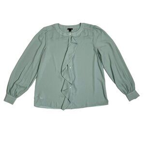 Ann Taylor women's blouse XS mint green long sleeve button down flowy