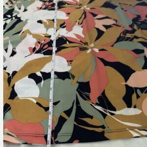 Features: Scoop neck with short flutter sleeves. Vibrant coral and multi colors in pretty tropical floral design. 40" length.