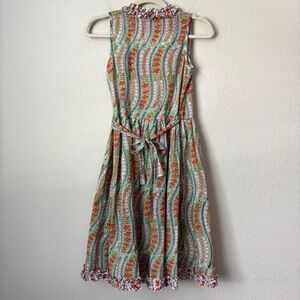 Anokhi Koki Boho Block Print Ruffle Trim Midi Wrap Dress Girls 10-11 Yrs