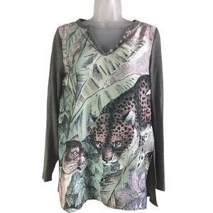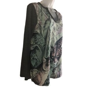 Anthropologie Akemi + Kin Fauna Henley Gray Jungle Cat Theme