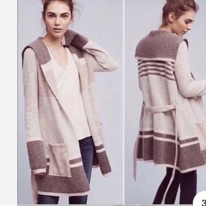 Anthropologie Angel of the North Lambswool Suede Pocket Belted Cardigan Sweater