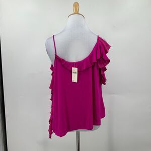 ANTHROPOLOGIE ASYMMETRICAL RUFFLE CAMI WOMEN XS EXTRA SMALL RASPBERRY TIERED