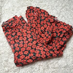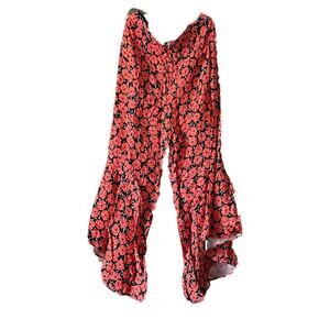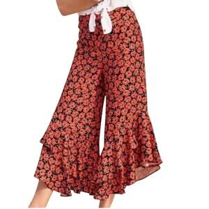 Anthropologie Coral Floral Capris Flowy Ruffle Wide Leg Zipper Side ZZ28