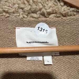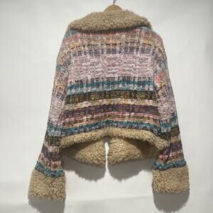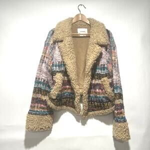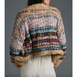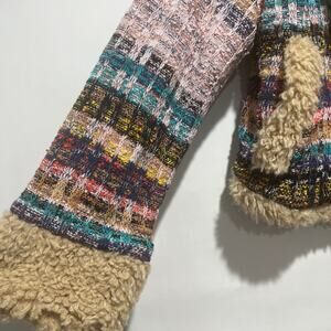 Anthropologie Cropped Faux Shearling Fur Sherpa Cuffs Tweed Sweater Coat Size L