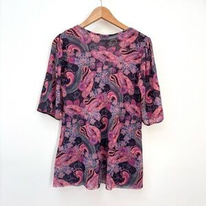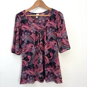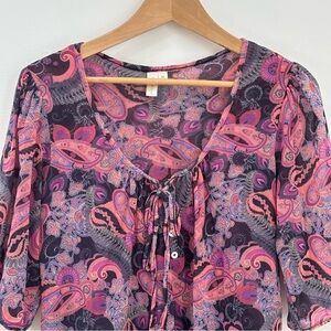 Anthropologie Daisy & Clover Mesh Paisley Floral Peasant Top Boho Multicolor XL