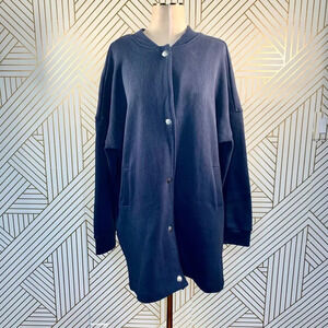 Anthropologie Deletta Murray Coat Sweatshirt Bomber Cotton Navy Blue Size Small
