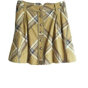Anthropologie Fei Skirt Twirl Plaid Vintage Twee Preppy Olive Green 8