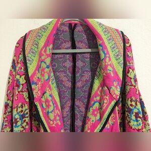 Anthropologie Freeway Colorful Geometric Floral Oversized Thick Sweater Cardigan Cape.