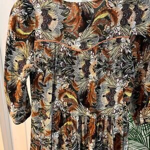 Anthropologie Jaase Feather Print Midi Dress Small Boho Coastal Cowgirl