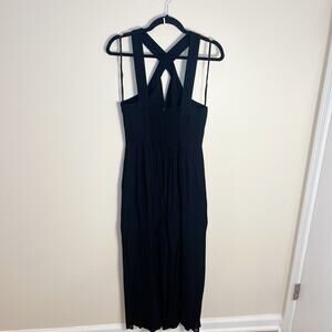 Anthropologie Key Hole Halter Black Jumpsuit Size 6 Black Gauzy