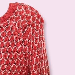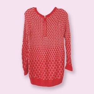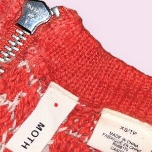 Anthropologie MOTH Crochet Tunic Top Coral Cream Long Sleeve Sweater Boho Womens Size XS
