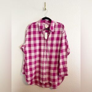 Anthropologie Maeve Bennett pink Buffalo Plaid Button Down Shirt small. NWT