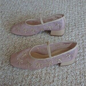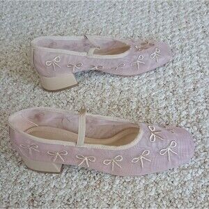 Anthropologie Maeve Chic Bow Embroidered Mary Jane Shoes size 38.5