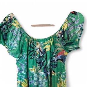 Embrace the tropics with this stunning Anthropologie Maeve maxi dress! Featuring a vibrant green tropical print with lush foliage and playful animals, this fully lined beauty is perfect for any warm-weather adventure. With a flattering fit and practical pockets, it’s made from 100% cotton with a soft 100% modal lining.