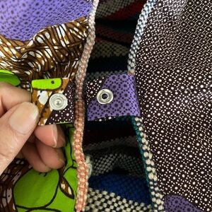 Brighten your style with this new-with-tags Anthropologie x Maud Fourier Reversible Tote—a rare find in pristine NWT condition. Crafted from durable canvas with vibrant serape stripes, this bag flips to reveal a different print on each side for two distinct looks in one. The center snap lets you modify its silhouette to carry more or cinch it in. With double-layered fabric handles and room for all your daily essentials, it’s as functional as it is eye-catching. Perfect for the beach, market runs, travel, or as a bold accessory to elevate any summer look.