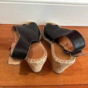 Anthropologie Maypol black Leather Cross Band Espadrilles Wedge Sandals 40/9 in excellent condition.