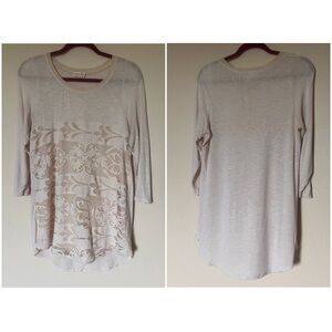 Anthropologie Meadow Rue Capriccio Lace Slub Jersey Tunic Top Ivory Cream Sz M