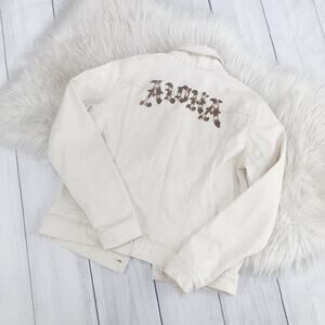 🆕 Anthropologie Mother Bruiser Cropped Embroidery Denim Jacket Size Medium