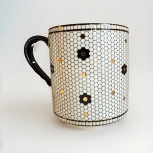 Anthropologie Mug Cup Margot Gold Tile Mosaic Monogram Letter M Honeycomb