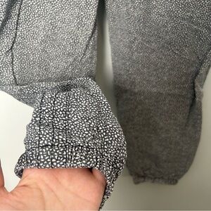 Relaxed joggers with pockets on each side and back. Blue and yellow polka dot like print. Stretch waist with adjustable tie. Size small. Fit true to size. Great condition!