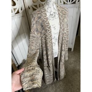 Anthropologie Pilcro Classic Longline Cardigan Duster Cream Brown Sz Large