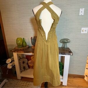 Anthropologie Pilcro Cross-Back Apron Pleated Dress Gold Woman's Size 00