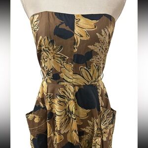 Anthropologie Plenty by Tracy Reese Floral Strapless Dress in Brown and Black