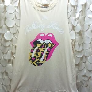 Anthropologie ROLLING STONES Graphic Print Tank Top Sz M Leopard Lip Sleeveless LIMITED EDITION Rocker Festival Bohemian Fan Concert Mick Jager Lips Coastal Gym Casual Workout Summer Travel Boho Preppy Whymsigoth Goth Streetwear Leisurewear Leisure Fancy