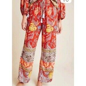 Anthropologie Sonrisa Paisley Floral Red Flowy Wide Leg Beach Pants size medium