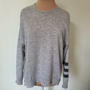 Anthropologie Sundry Wool Cashmere Scallop Gray Stripe Sleeve Sweater EUC Sz 1/S