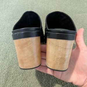 Anthropologie The Odells Black Leather Silver Studded Wooden Platform Clogs 9