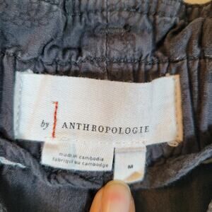 Anthropologie Womens Pull On Straight Chambray Paperbag Pants Size Medium Black