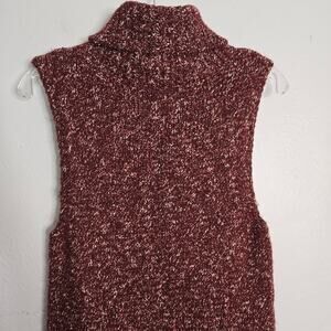 Anthropologie Wool Blend Knit Maxi Turtleneck Tank Sweater Tunic Size S Burgundy