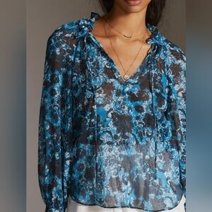 Anthropologie sheer printer peasant blouse size medium, pre-owned please check the pictures for condition.